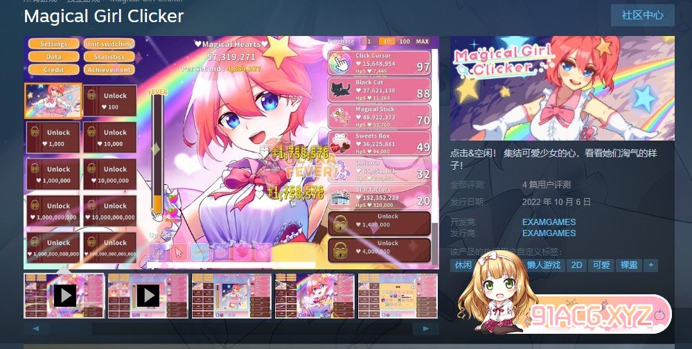 点击可爱的魔法少女,开启“发烧模式”,提升点击力!